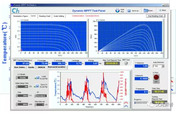 2. 軟件將記錄檔案讀入,設定太陽能電池特性及面積,即可仿真出變動的特性曲線。