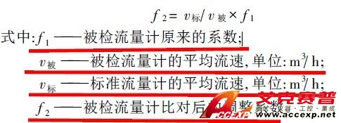 式中: f 1被檢流量計原來的系數;v被! ! ! 被檢流量計的平均流速, 單位: m3/h;標準流量計的平均流速, 單位: m3h;f 2 ! ! ! 被檢流量計比對后的調整系數。