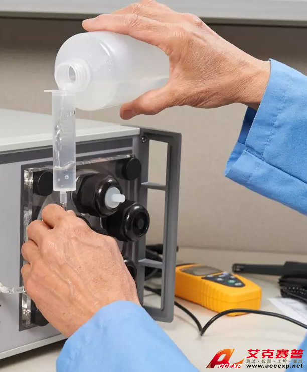5128A 只需使用純凈蒸餾水即可工作,無需壓縮空氣或其他附加液體。前面板提供液位指示,顯示濕度發生器內的液位狀態。當液位低于最小值時,只需向儲液罐中加注純凈蒸餾水即可。