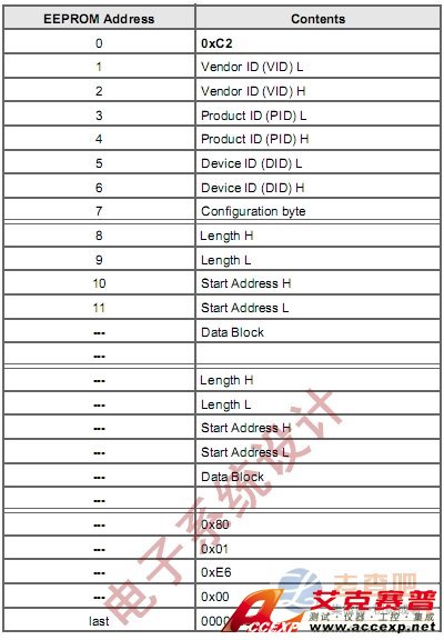 圖1:Cypress 68013A與EEPROM連接示意圖。