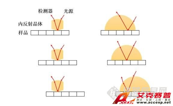 圖2 ATR紅外光譜成像的兩種測(cè)量方式。左:ATR單點(diǎn)物鏡;右:ATR成像附件。