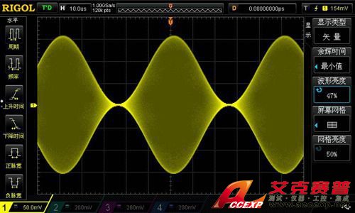 除此之外,DS1054Z還擁有完美的熒光顯示效果,不但清晰顯示各種調制信號,還可提供異常信號出現概率信息;它還標配12M存儲深度,是同檔示波器中的最高水平,可以捕獲更長時間波形和更多信號細節,添加選件還可擴展到24M。在測量功能方面,DS1054Z可以提供24種自動測量功能,可同時顯示5個測試參數,并提供測試結果的統計分析;以及通過/失敗模板測試功能,可以長時間監測和生產線測試應用等。在添加選件后,DS1054Z還可提供6萬幀的硬件波形錄制與回放功能和串行總線觸發與解碼功能,可支持I2C、SPI、RS232/UART總線的觸發和解碼。