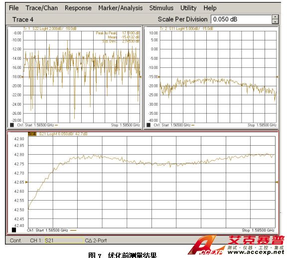現(xiàn)代的LNA設(shè)計(jì)指標(biāo)越來越好,優(yōu)異的LNA性能對傳統(tǒng)的參數(shù)測量方法提出了很大挑戰(zhàn),但是通過合理地設(shè)置網(wǎng)絡(luò)分析儀以及優(yōu)化校準(zhǔn)過程,可以獲得較高的測量精度。