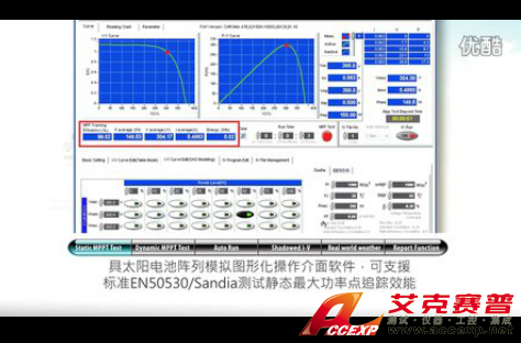 最新Dynamic MPPT Test功能將符合Sandia & EN50530測(cè)試規(guī)范,使用者可藉由此圖形化虛擬儀控面板軟體內(nèi)的Dynamic MPPT Test功能,選取Sandia或EN50530 I-V數(shù)學(xué)式及測(cè)試項(xiàng)目,此可模擬實(shí)際天候下的照度及溫度變化I-V曲線測(cè)試光伏逆變器的動(dòng)態(tài)MPPT追蹤效能,使用者可簡(jiǎn)單編輯動(dòng)態(tài)I-V曲線于低照度變化至高照度的執(zhí)行時(shí)間及溫度變化時(shí)間,且可設(shè)定執(zhí)行重復(fù)周期,當(dāng)測(cè)試執(zhí)行后此GUI將自動(dòng)計(jì)算MPPT效能以利使用者分析,此軟體將提供測(cè)試資料記錄功能,可讓使用者編輯欲記錄的量測(cè)參數(shù),如電壓、電流、功率、瓦時(shí)及MPPT效率,另外可編輯欲記錄的取樣時(shí)間間隔(1 - 10,000s)及總時(shí)間長(zhǎng)度,此資料將方便于分析驗(yàn)證光伏逆變器。如果有這方面的應(yīng)用和研究需求,歡迎致電Chroma核心代理商長(zhǎng)沙艾克賽普儀器設(shè)備有限公司0731-84284278
