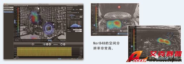 Norsonic Nor848系統是一個創新的聲音攝影機,使用了大量的麥克風去避免假象訊號,跟一般傳統上的聲音影像化技術相比,Nor848具有更高的指向性,在聲源位置查找方面更準確,誤判更少。
