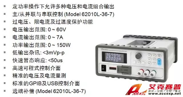 Chroma 62000L系列可程控直流電源供應(yīng)器具傳統(tǒng)Linear穩(wěn)壓器之輸出低雜訊、高速暫態(tài)響應(yīng)特性,同時具備Switching穩(wěn)壓器的輕型化、小體積及低成本等特性,提供許多獨特功能供自動化測試系統(tǒng)整合、車用電子MCU/ECU測試、半導(dǎo)體驅(qū)動電源及無線通信電源使用,是一高性價比的可程控直流電源供應(yīng)器,設(shè)計為滿足有嚴(yán)格要求的新一代電力電子應(yīng)用。