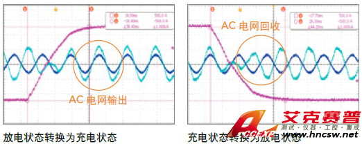 能量回收至電網過程,AC電流波形平順且實時完成相位轉換,可避免測試誤判或造成電網被污染影響其他設備