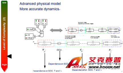 簡單電池模型中只考慮SOC對(duì)電池性能的影響。而準(zhǔn)穩(wěn)態(tài)模型參數(shù)除了soc,還依賴于溫度。也可以建模仿真磁滯效應(yīng):電池充電和放電時(shí),對(duì)應(yīng)不同的開路電壓值。此外,可以考慮熵的影響,它是由電池內(nèi)部的化學(xué)反應(yīng)引起的,可以是放熱或者吸熱過程,且會(huì)增加電(阻力)熱流,因此,在電池及EV熱管理建模分析中,為了考慮準(zhǔn)確的系統(tǒng)發(fā)熱邊界,準(zhǔn)穩(wěn)態(tài)電池模型是合理的選擇之一。