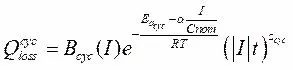 靜態(tài)老化模型在工程計(jì)算中很少使用;一般根據(jù)試驗(yàn)數(shù)據(jù)直接擬合動(dòng)態(tài)的電池健康度關(guān)系曲線,或者標(biāo)定半經(jīng)驗(yàn)公式中的相關(guān)系數(shù)以獲取準(zhǔn)確的電池老化模型。循環(huán)老化的半經(jīng)驗(yàn)公式如下: