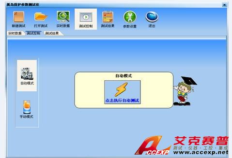 測試模式說明:自動(dòng)模式與手動(dòng)模式。自動(dòng)模式可自動(dòng)記錄參數(shù)值,在滿足基頻電流值小于1%額定電流值后,切斷觸發(fā)開關(guān),自動(dòng)記錄顯示3秒的波形,自動(dòng)計(jì)算并直接顯示出保護(hù)時(shí)間。手動(dòng)模式下,需要手動(dòng)切斷開關(guān),在出現(xiàn)保護(hù)波形時(shí)Hold(保持)在軟件界面上,再完成保護(hù)時(shí)間的測量。