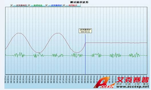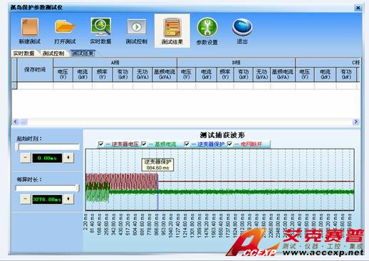 如圖所示,可自動(dòng)記錄波形進(jìn)行孤島保護(hù)時(shí)間的測量。