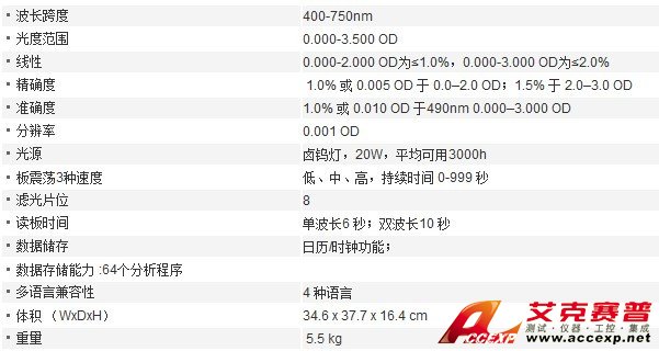 ● 內置軟件的友好用戶面板,最多預設有64個終點法和動力學檢測程序(包括food safety tests ),功能強大的曲線擬和程序和統計學分析功能 自動的對照檢測、儀器初始化、數據分析和結果輸出。客戶可以很方便的編制、存儲和再使用各種程序