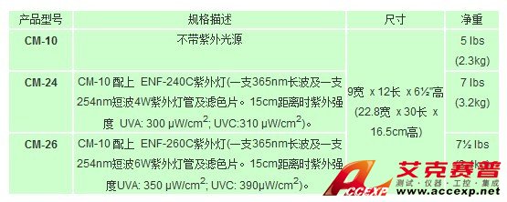 CM-26重量輕,尺寸小,因而便攜性好。ENF-260C紫外燈為UL 、CSA 及CE認(rèn)可。