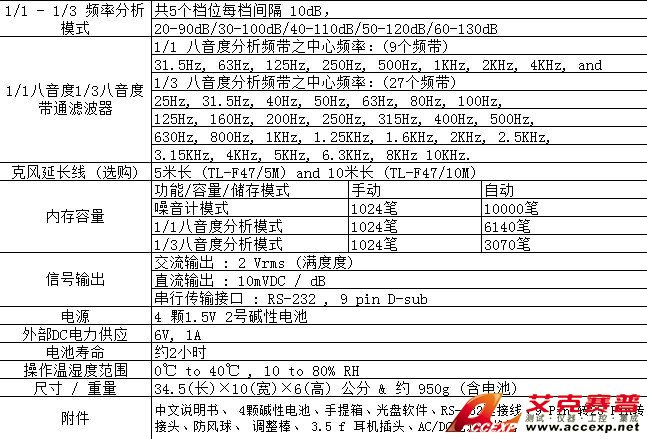 數字顯示:4個位數,更新周期 0.5秒,分辨率 0.1dB