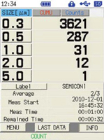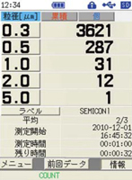 | 2) | 粒徑區(qū)分は下記から選択することが可能です 3段階:0.3μm、0.5μm、5.0μm以上 (初期値) 2段階:0.3μm、0.5μm以上 2段階:0.5μm、5.0μm以上 |