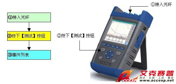 A6418的自動(dòng)測(cè)試功能使得用戶無(wú)需了解更多的有關(guān)該儀器操作的細(xì)節(jié),測(cè)試步驟變得非常簡(jiǎn)單,只需要接入光纖、點(diǎn)擊【測(cè)試】按鈕即可,儀器會(huì)自動(dòng)設(shè)置最佳測(cè)試條件并最終給出準(zhǔn)確的測(cè)試結(jié)果,如測(cè)試曲線和事件列表等。
