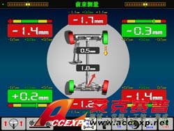 測(cè)量系統(tǒng):外傾角設(shè)計(jì)了以車輪傾斜和顏色的變化來區(qū)分;總前束、獨(dú)立前束設(shè)計(jì)了以車輪的變動(dòng)和顏色來區(qū)分 |
