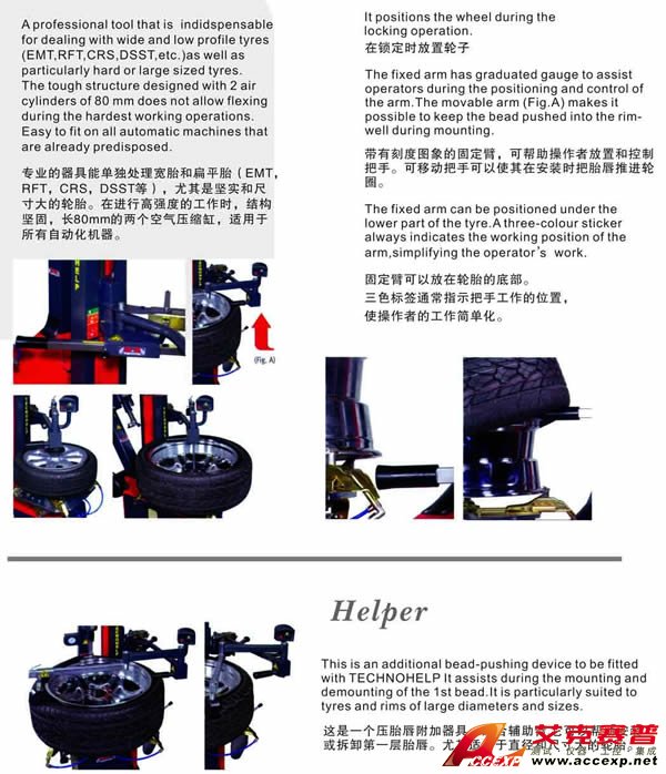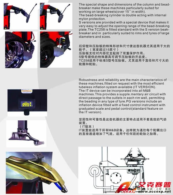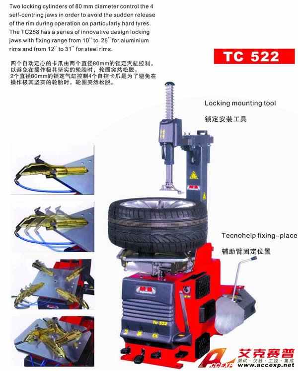 M&B TC-522拆胎機特殊需求的原因在于輪胎和輪輞的不斷變化(EMT, RFT,CRS,DSST,PAX等),要求M&B TC-522拆胎機專門研究。在這些模式中,M&B TC-522拆胎機在解決問題和建立質(zhì)量標(biāo)準(zhǔn)方面起著重要作用。M&B TC-522拆胎機是新一代的拆輪胎設(shè)備為市場上的所有輪胎提供最好的安裝和拆卸功能。