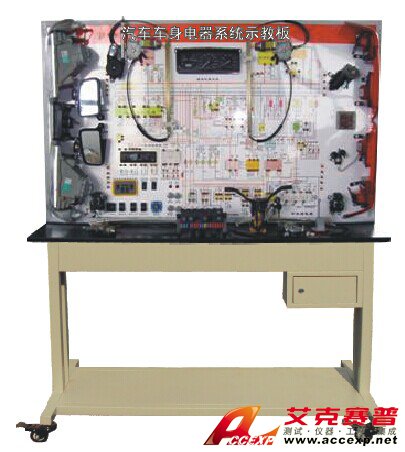 桑塔納2000起動系統(tǒng)、電源系統(tǒng)、儀表系統(tǒng)、燈光照明系統(tǒng)、中控門鎖、電動門窗、音響系統(tǒng)、雨刮系統(tǒng)及各類開關等。檢測端子、故障設置系統(tǒng)、大容量蓄電池或12V開關電源、大型彩色噴繪電路原理圖、控制面板、可移動臺架、使用說明書及實訓指導書等。