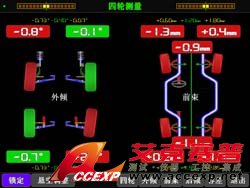 測量系統:外傾角設計了以車輪傾斜和顏色的變化來區分;總前束、獨立前束設計了以車輪的變動和顏色來區分 |