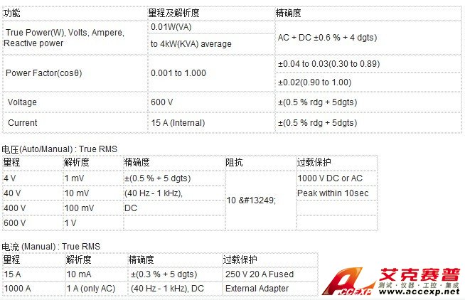 1V-600V直接測(cè)量(±0.3%)(AC)
