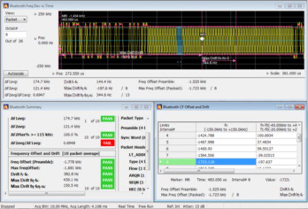 增加了兩個新選項,幫助您在時域、頻域和調(diào)制域中進行基于 Bluetooth SIG 標(biāo)準(zhǔn)的發(fā)射機 RF 測量。選件 SV27 支持 RF 規(guī)定的基本速率和低能耗發(fā)射機測量。TS.4.2.0?和 RF-PHY.TS.4.2.0?測試規(guī)范它還解調(diào)并提供增強數(shù)據(jù)速率數(shù)據(jù)包的符號信息。選件 SV31 支持藍(lán)牙 5?標(biāo)準(zhǔn)(LE 1M、LE 2M、已編碼 LE)和核心規(guī)范中規(guī)定的測量。這兩個選件也解碼所傳輸?shù)奈锢韺訑?shù)據(jù)并使用顏色編碼符號表中的數(shù)據(jù)包字段以便清晰標(biāo)識。
