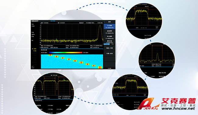 信道功率,鄰道抑制比,占用帶寬,時(shí)域功率,載噪比,三階交調(diào)分析,諧波分析,瀑布圖 |