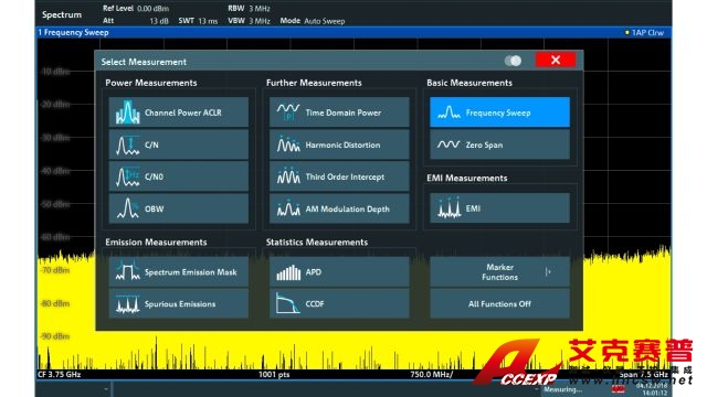 R&S FPL1000 不僅支持頻譜測量,而且支持使用功率探頭的高精度功率測量以及模擬和數字調制信號分析。