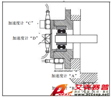加速度計(jì)的安裝方式使得所需測量方向與主軸靈敏度吻合。加速度計(jì)對于橫向方向中的振動(dòng)有點(diǎn)敏感,但這通常可被忽略,因?yàn)樽畲髾M向靈敏度通常僅有主軸靈敏度的百分之幾。進(jìn)行振動(dòng)測量測試的原因通常決定加速度計(jì)的位置。在下圖中,其目的是監(jiān)控軸和軸承的條件。在該實(shí)例中,應(yīng)對加速度計(jì)進(jìn)行定位,以保持軸承振動(dòng)的直接路徑。因此,加速度計(jì) “A” 將檢測主要來自軸承而不是機(jī)器其他部分的振動(dòng)信號(hào),而加速度計(jì) “B” 將接收通過關(guān)節(jié)的傳輸改變的軸承振動(dòng), 混合來自機(jī)器其他部分的信號(hào)。同樣,加速度計(jì)“C”被安裝在比加速度計(jì)“D”更加直接的路徑上。