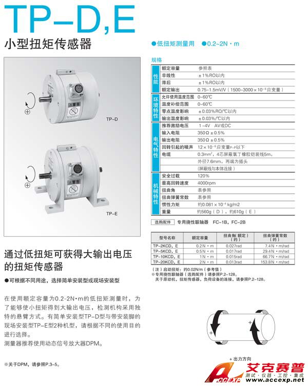 簡(jiǎn)介:KYOWA TP-D,E 小型扭矩傳感器