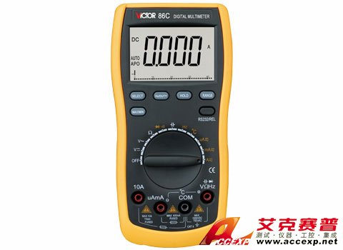 簡介:VC86C數字萬用表|萬用表VC86C的特點: 1、大屏幕模擬棒條、單位符號顯示,字跡清楚。 2、金屬屏蔽板,防磁,抗干擾能力強。 3、全保護功能,防高壓打火電路設計。 4、新型防振套,流線型設計,手感舒適。 VC86C數字萬用表|萬用表V...