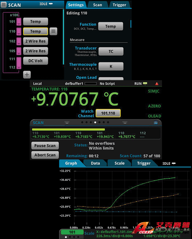 • 配置:使用一個測量和掃描配置菜單設置具有多種測量功能的多通道掃描。