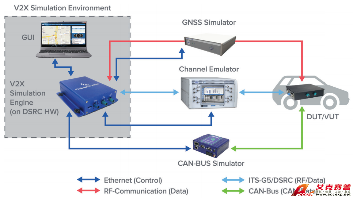• 使用思博倫GNSS模擬器實現被測V2X ECU的精確位置仿真。