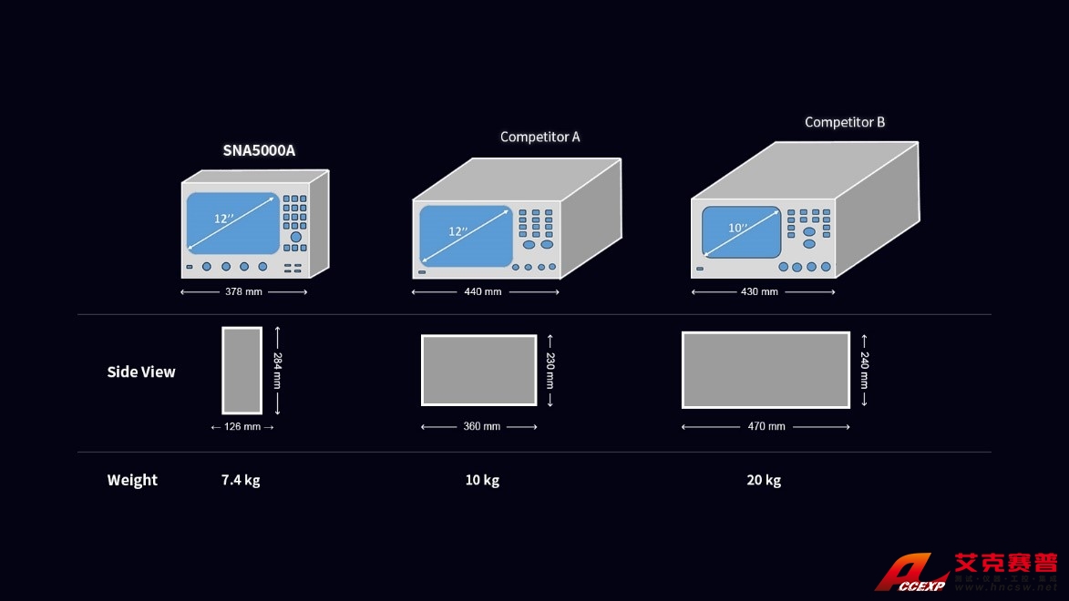 不管是在研發還是在現代化的生產線,區別于傳統笨重的矢量網絡分析儀,SNA5022A 超前的外觀設計都能為工程師或者產線節省大量的桌面空間。