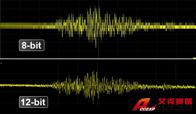 目前許多移動電子產品設計都朝著低功耗、低電壓電子系統的趨勢發展,因此對數字示波器等測試測量儀器的精度也提出了更高的要求。12-bit高分辨率示波器的量化誤差比普通的8-bit示波器小16倍,能助力工程師更完整清晰地觀測到波形的細節,并進行更精準的波形測量。