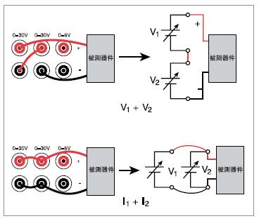 如果想為雙極模擬電路供電,可以把 Series2230G 電源的通道 1 和通道 2、 30V和60V通道連接起來,為正電路 和負電路供電。電源擁有跟蹤模式,可 以使用一個控制操作,同時改變兩臺電 源的輸出。在電壓變化時,跟蹤的兩條 通道的幅度可以一起變化,也可以按用 戶規定的比率變化。因此,可以簡便地 在指定電壓工作范圍內測試雙極電路、 模塊或器件。