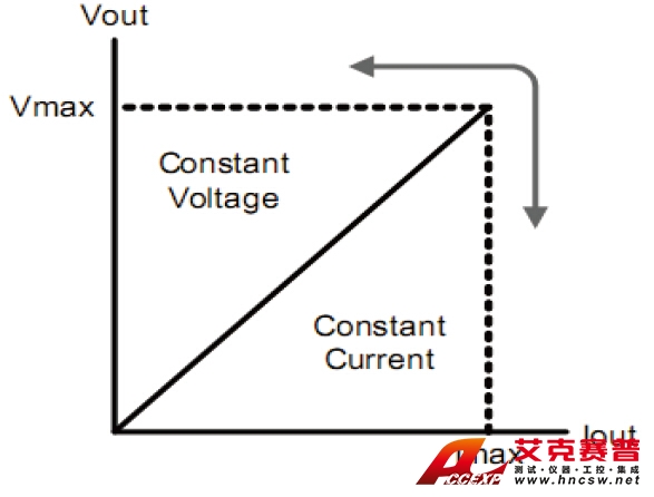 通過此功能,電源可在隨負載變化而發生的恒定電壓模式到恒定電流模式的轉換時保持不間斷操作。針對當前的負載,電源工作在恒電壓模式下,電源將提供一個受控制的輸出電壓,隨著負載電阻值的變小,輸出電壓降保持恒定,直到電流增大而受限于預設的電流值,然后發生轉換。此時電源變為定電流輸出,而輸出電壓將根據進一步的負載電阻值變小按比例降低。當電流值低于設定值時,電源返回恒電壓模式。