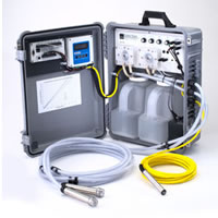 流量比例混合水采樣器裝在一個堅固、防雨的帶鎖攜帶箱內,包括聚乙烯廢水采樣瓶用于收集混合水樣、蠕動采樣泵、控制面板和可充電電池,以及進樣管和電池充電器。可選玻璃采樣瓶、便攜式冷卻器、便攜式冰袋容器等。