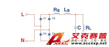 圖2為橋式整流的典型線路。在RLC模式下,使用者可透過設定RLC值,100%模擬實際待測物的行為。圖3 & 4分別是透過實際被動負載(電阻、電感、電容)與使用RLC負載模式量測。圖5則為定電流模式下所得到的波形。