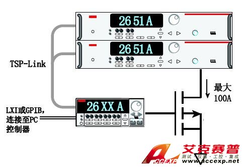 此外,兩臺2651A 型采用TSP-Link 并 聯(lián)時,電流量程從50A 擴展至100A。 當兩個單元串聯(lián)時,電壓范圍從40V 擴 展至80V。內置智能特性使多個單元可 作為單臺儀器進行尋址,簡化了測試, 由此形成業(yè)內最佳的動態(tài)范圍(100A 至 1pA)。這種能力確保用戶可測試各種各 樣的功率半導體和其他器件。