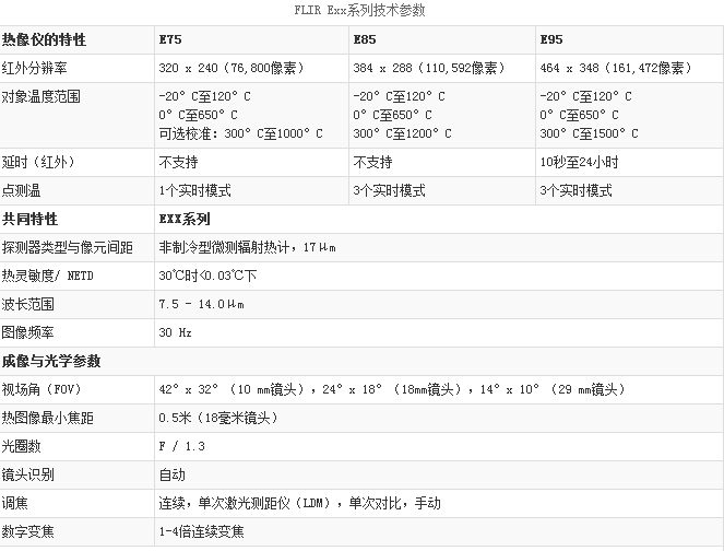 FLIR E75,E85,E95高級紅外熱像儀系列特性: